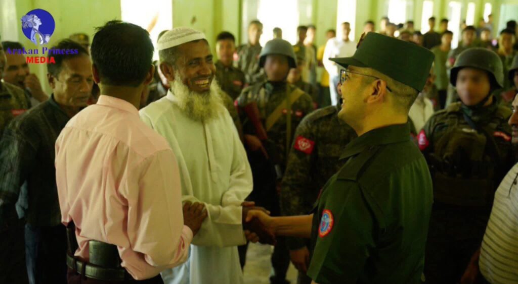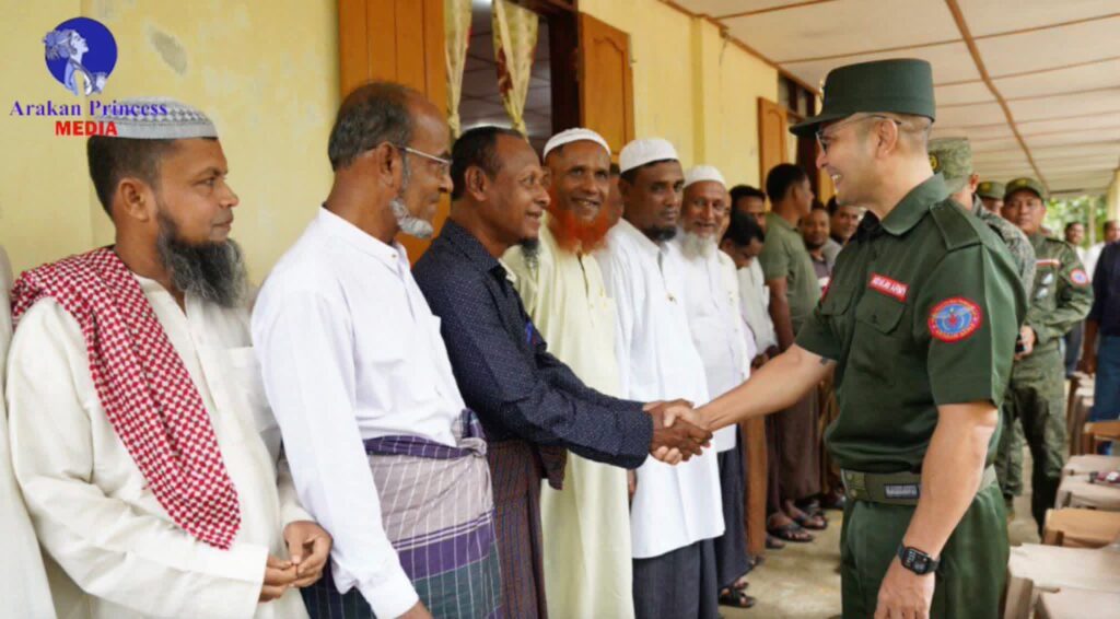 အာရက္ခတပ်တော် စစ်ဦးစီးချုပ် ဗိုလ်ချုပ်ထွန်းမြတ်နိုင်ဟာ ရခိုင်လူထုနဲ့ မွတ်ဆလင် အသိုင်းအဝိုင်းကြား ငြိမ်းချမ်းစွာယှဉ်တွဲနေထိုင်ရေးအတွက် အဓိက ထားလုပ်ဆောင်နေကြောင်းကို မောင်တော က အစ္စလာမ် လူထုနဲ့ တွေ့ဆုံပြီး အသိပေးလိုက်ပါတယ်။
