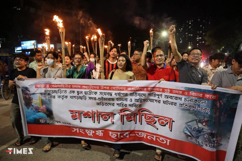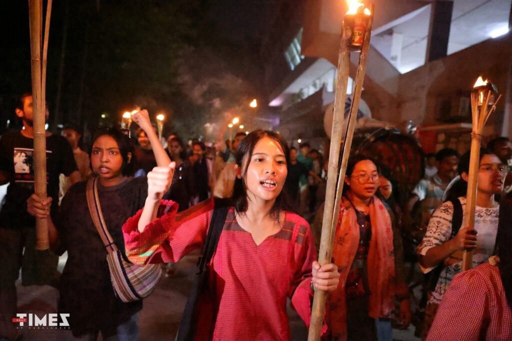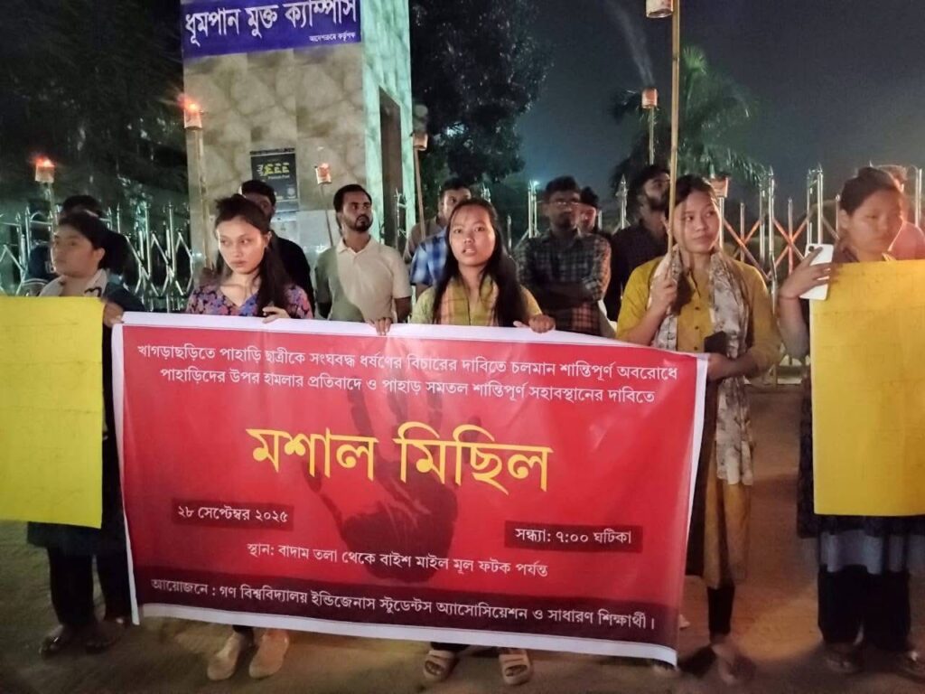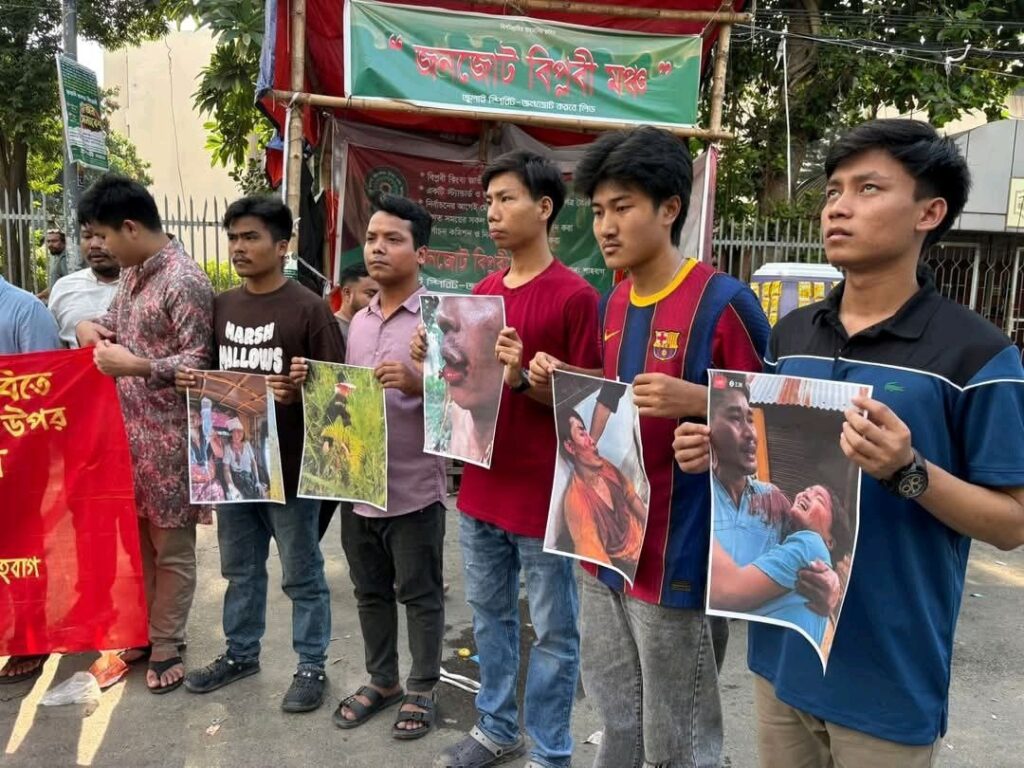 စက်တင်ဘာ ၂၃ ရက်နေ့ က ဘဂ်လားဒေ့ရှ် ခါကာဆိုရီ ခရိုင် ၊ ဂွီမားရာ မြို့နယ် မှာ မရမာကျောင်းသူတစ်ဦး ကို အုပ်စုဖွဲ့ အဓမ္မပြုကျင့်ခံရတဲ့ ဖြစ်စဉ်ကို တရားမျှတမှု ရရှိရေး မရမာ နဲ့ သက် လူငယ်တွေက ဆန္ဒထုတ်ဖော်နေကြတာဖြစ်ပါတယ်။