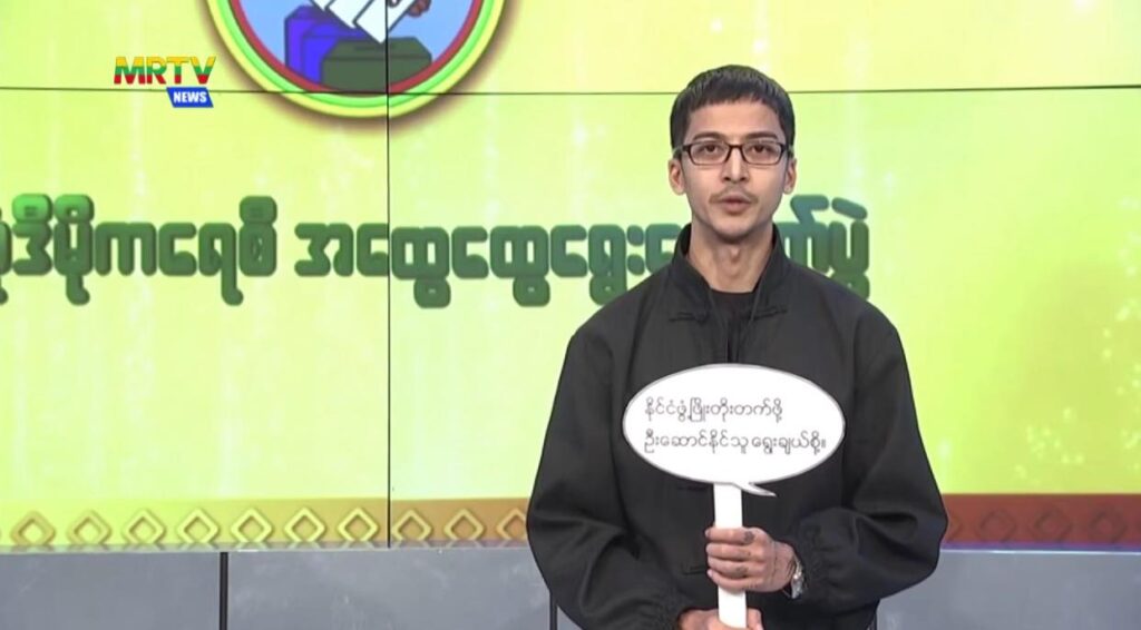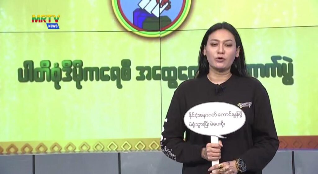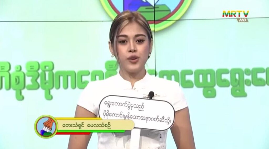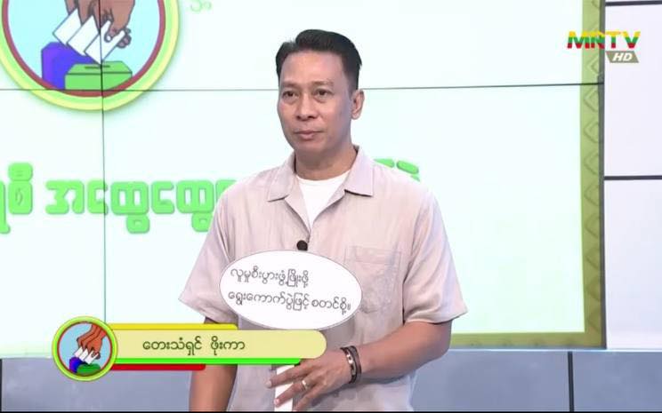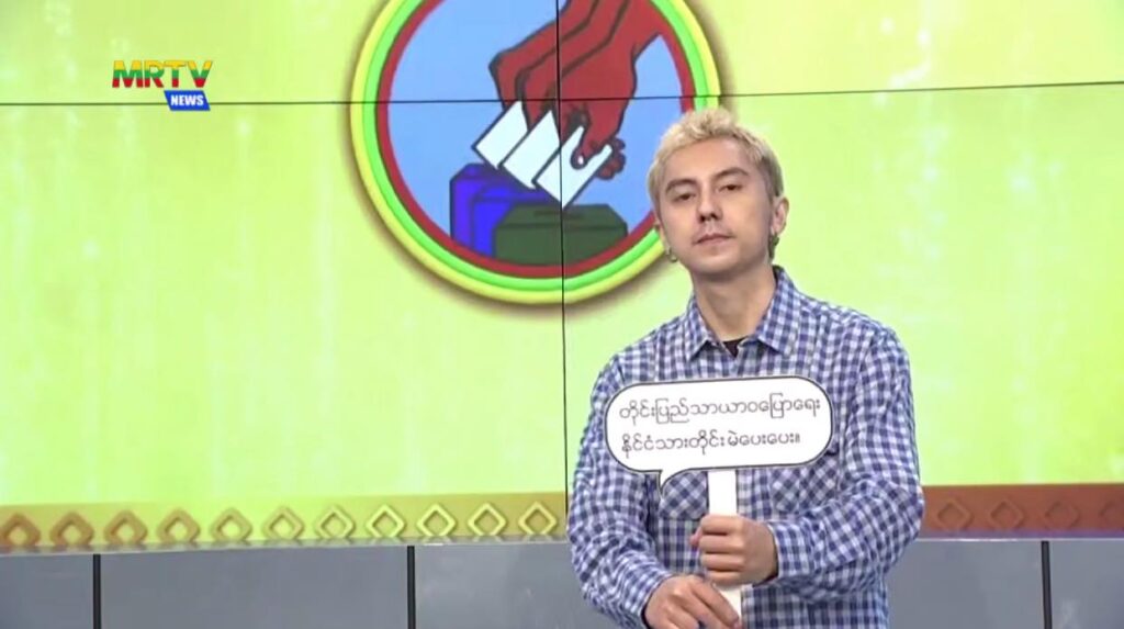 အဆိုတော်တွေ ဖြစ်တဲ့ အောင်လ၊ ဝေလ၊ ဖိုးကာ၊ ရဲရင့်အောင်၊ အောင်ထက်၊ ဖြိုးပြည့်စုံ၊ ဟန်နေတာ၊ နီနီခင်ဇော်၊ မိစန္ဒီ၊ ချမ်းမြေ့မောင်ချို၊ မေလသံစဥ်၊ အိမ့်ချစ်၊ အေးမြဖြူနဲ့ လိမ္မော်သီးတို့ က ရွေးကောက်ပွဲမှာ မဲထည့်ဖို့ လက်အောက်ခံ မြန်မာ့အသံနဲ့ မြဝတီ ချန်နယ်တွေက တဆင့် စည်းရုံးလှုံ့ဆော်နေကြရတာဖြစ်ပါတယ်။