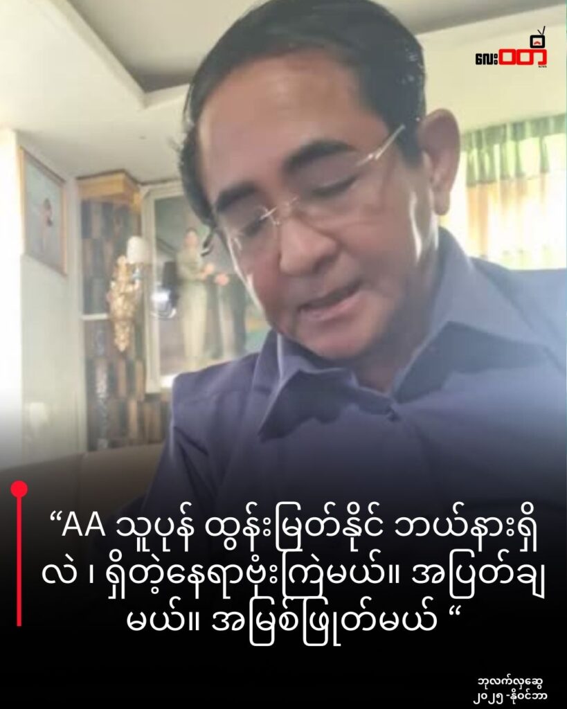 ဒုတိယအထောက်အထားတစ်ခုအနေနဲ့ ကတော့ အမတ်ဟောင်း ဘုလက်လှဆွေက အင်တာနက်စာမျက်နှာပေါ်မှာ တော်လှန်ရေးတပ်ဖွဲ့တစ်ခုဖြစ်တဲ့ အာရက္ခတပ်တော် AA ရဲ့ စစ်ဦးစီးချုပ် ရှိတဲ့နေရာကို ရှာဖွေပြီး လေကြောင်းက သ-တ်ဖြတ်ဖို့ ပြောဆိုခဲ့ပါတယ်။