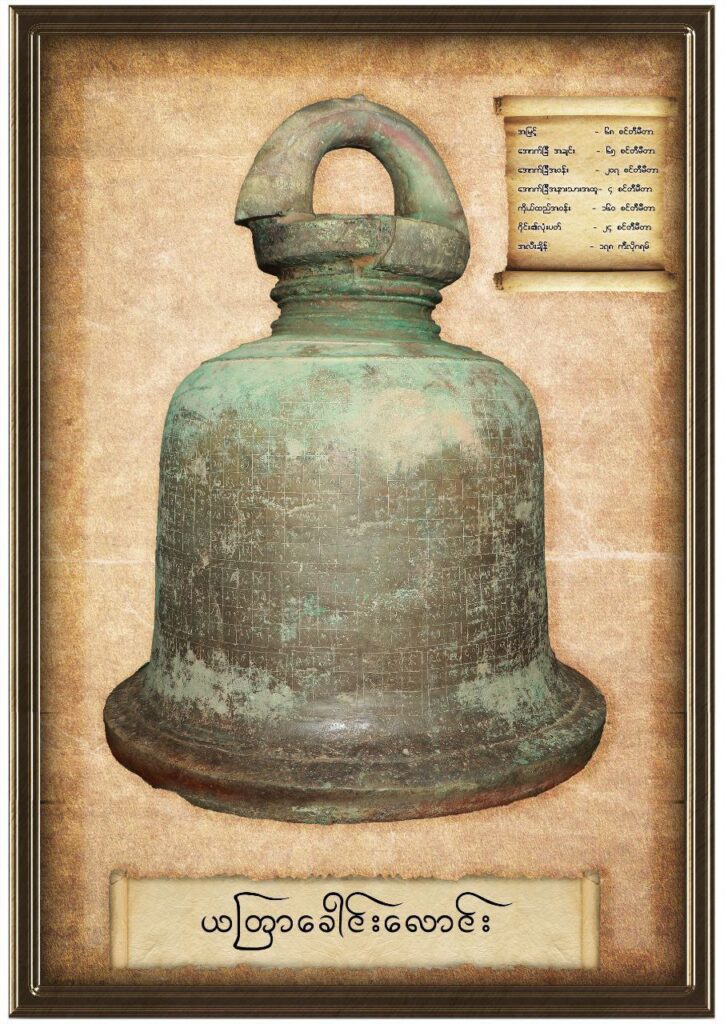 အမြင့် ၈၆ စင်တီမီတာ၊ အောက်ခြေအချင်း ၆၅ စင်တီမီတာ၊ အောက်ခြေအဝန်း ၂၀၇ စင်တီမီတာ၊ အနားအထူ ၄ စင်တီမီတာ၊ ကိုယ်ထည်အဝန်း ၁၆၀ စင်တီမီတာ နဲ့ လုံးပတ် ၂၄ စင်တီမီတာရှိတဲ့ သမိုင်းဝင် ကြေးသွန်းခေါင်းလောင်းလည်းဖြစ်ပါတယ်။